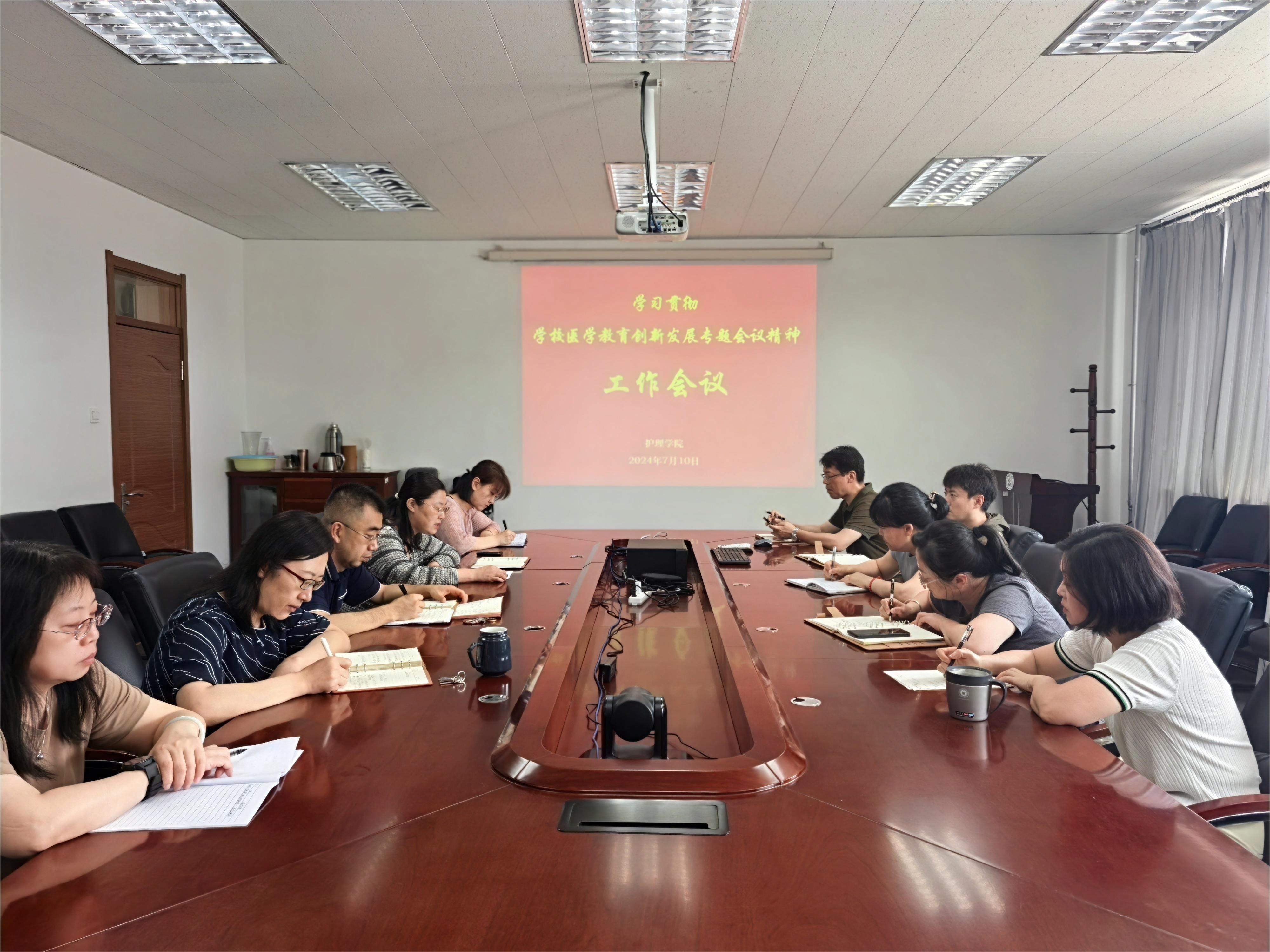 在三楼会议室召开学习贯彻学校医学教育创新发展专题会议精神工作会议。学院领导班子成员、党委委员、纪委委员、教学科研中层部门、党委办公室和行政办公室相关人员参加了本次会议,会议由学院党委书记韩月波主持。