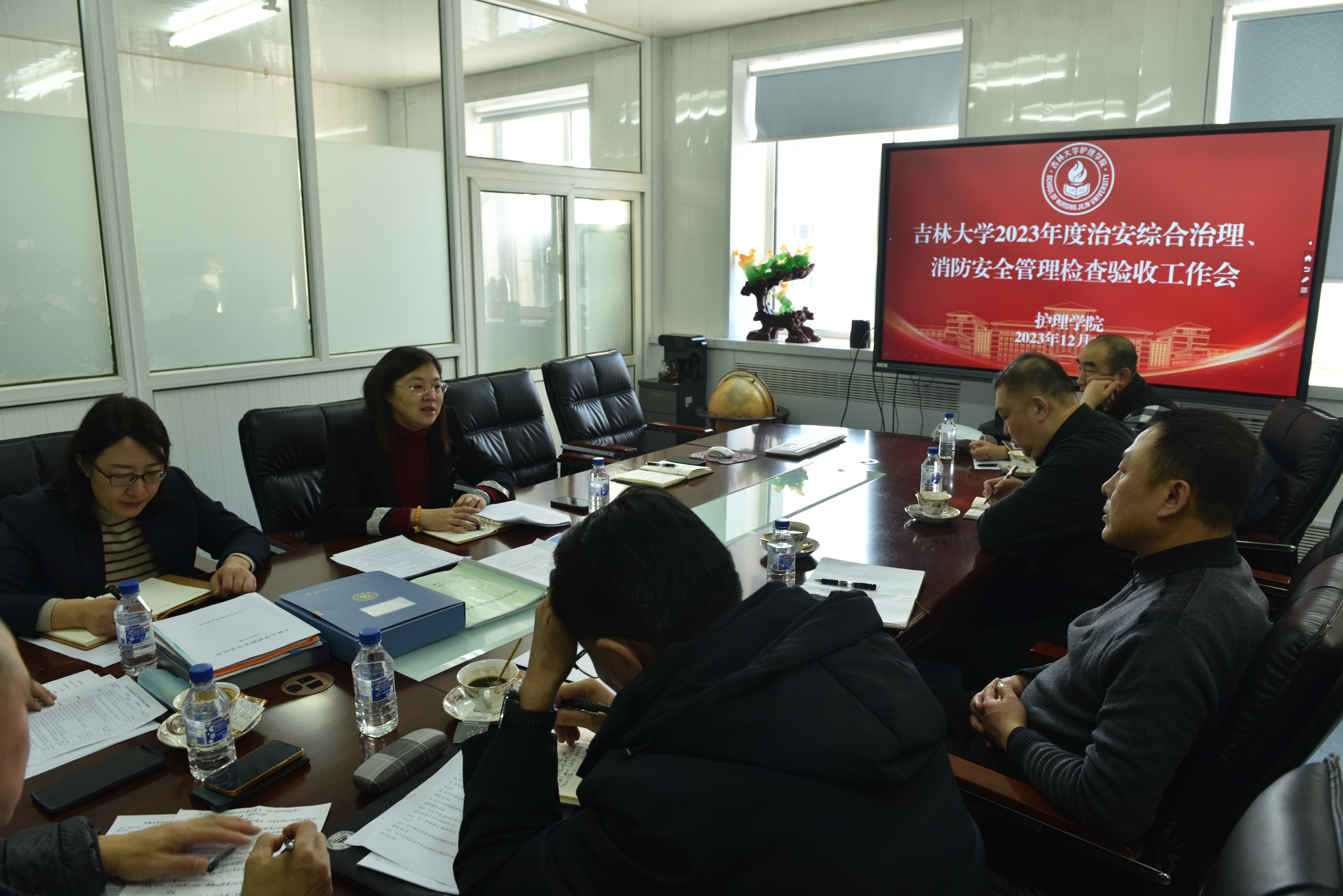 开展治安综合治理、消防安全管理检查验收工作。学院党委书记韩月波、党委副书记兼副院长葛宗梅、副院长李昆、行政综合办公室主任杨鹏参加会议。
