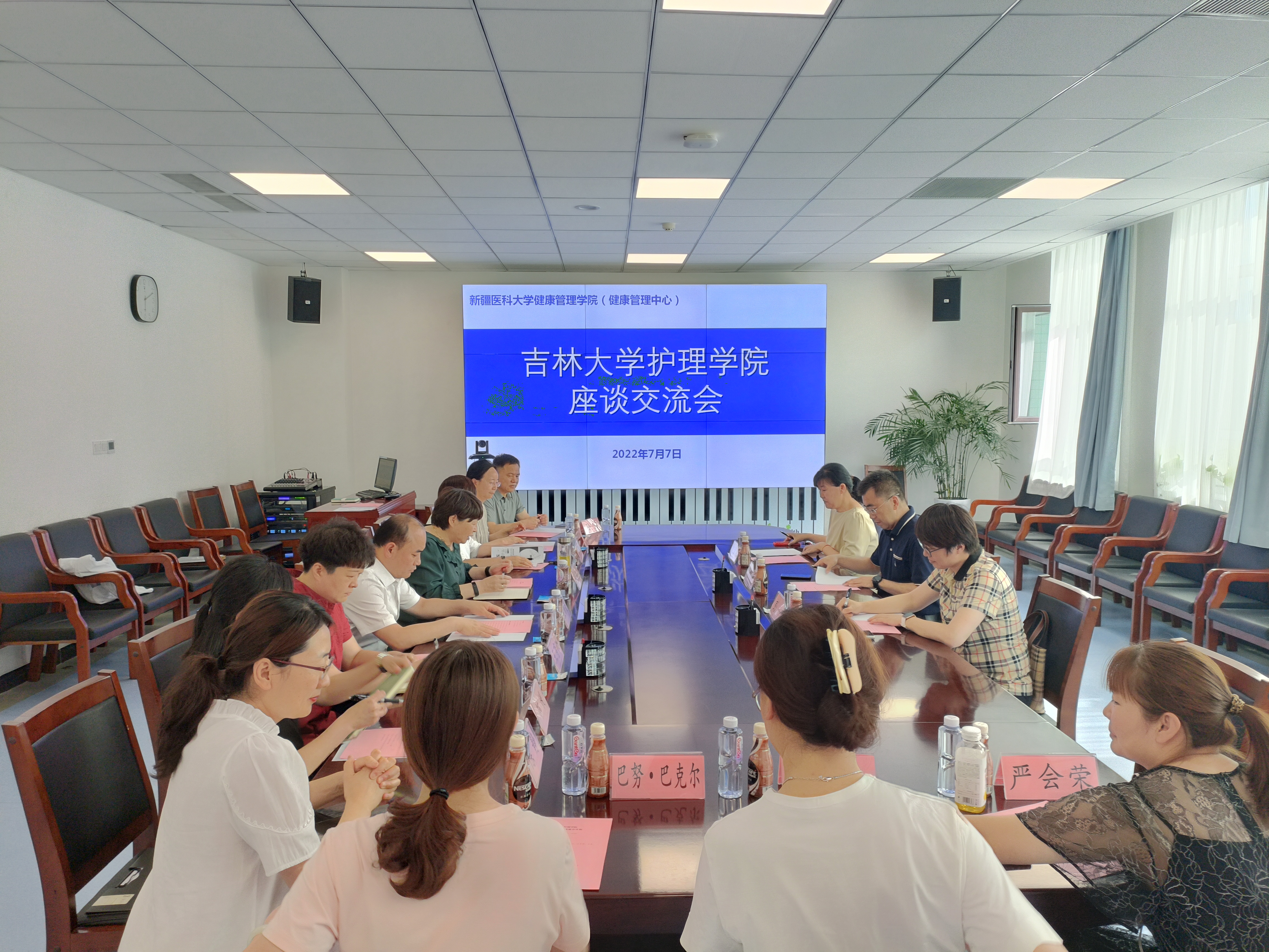 康复治疗教研室赵丽晶主任介绍了医学技术硕士点相关发展情况。期间双方就康复治疗学和健康管理两个专业的发展进行交流,并在以后康复治疗学科研和教学上的合作达成初步共识。出席交流会的还有新疆医科大学健康管理学院(中心)健康体检部王增亮主任、基础教研室孙勇主任、健康体检部邹媛副主任及相关教师代表。