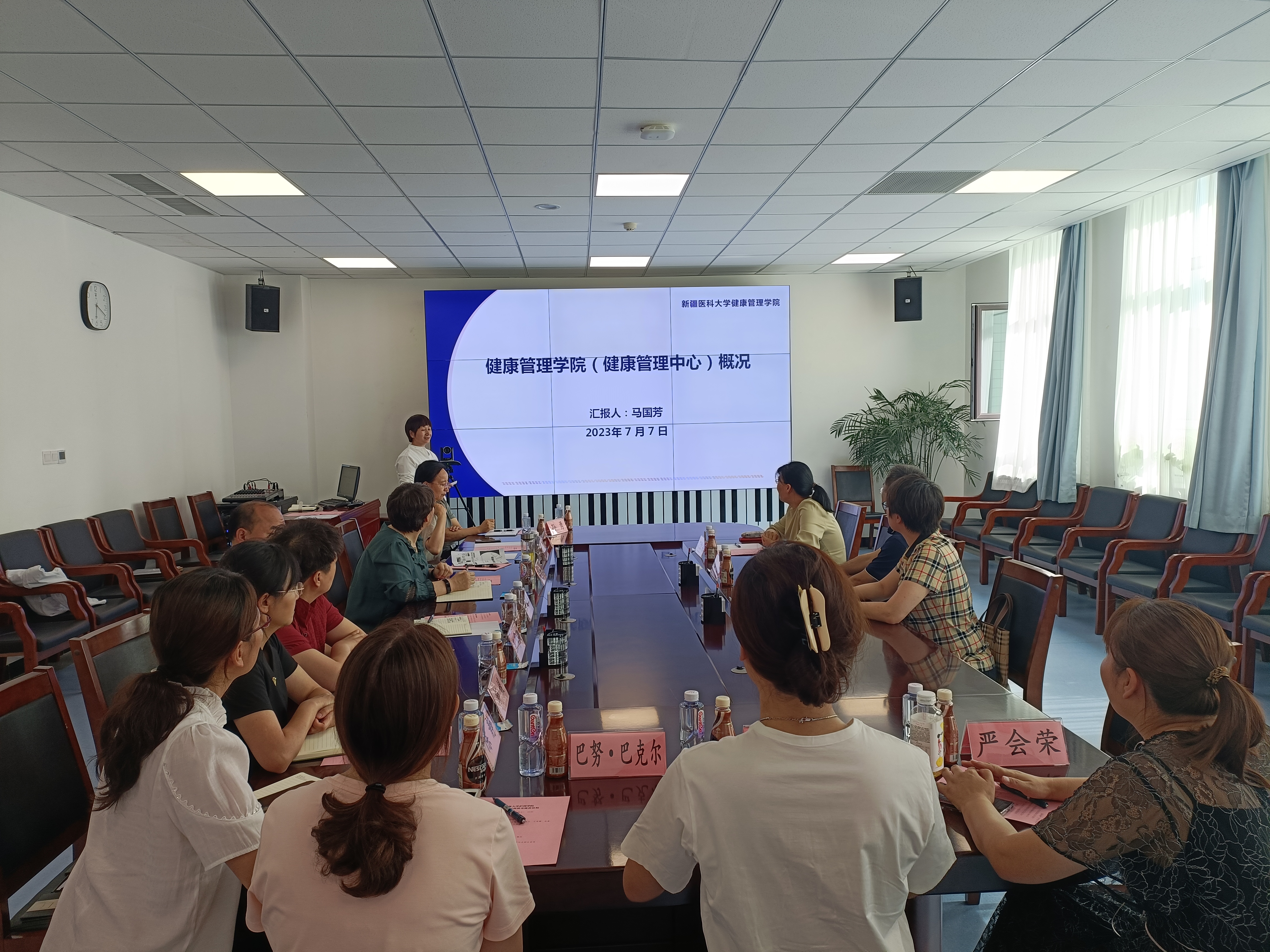 新疆医科大学健康管理学院董旭南院长对李峰院长一行表示诚挚欢迎。新疆医科大学健康管理学院马国芳副书记介绍了学院的相关发展概况,新疆医科大学第一附属医院康复科王宝兰主任介绍了康复学科发展概况,九游娱乐