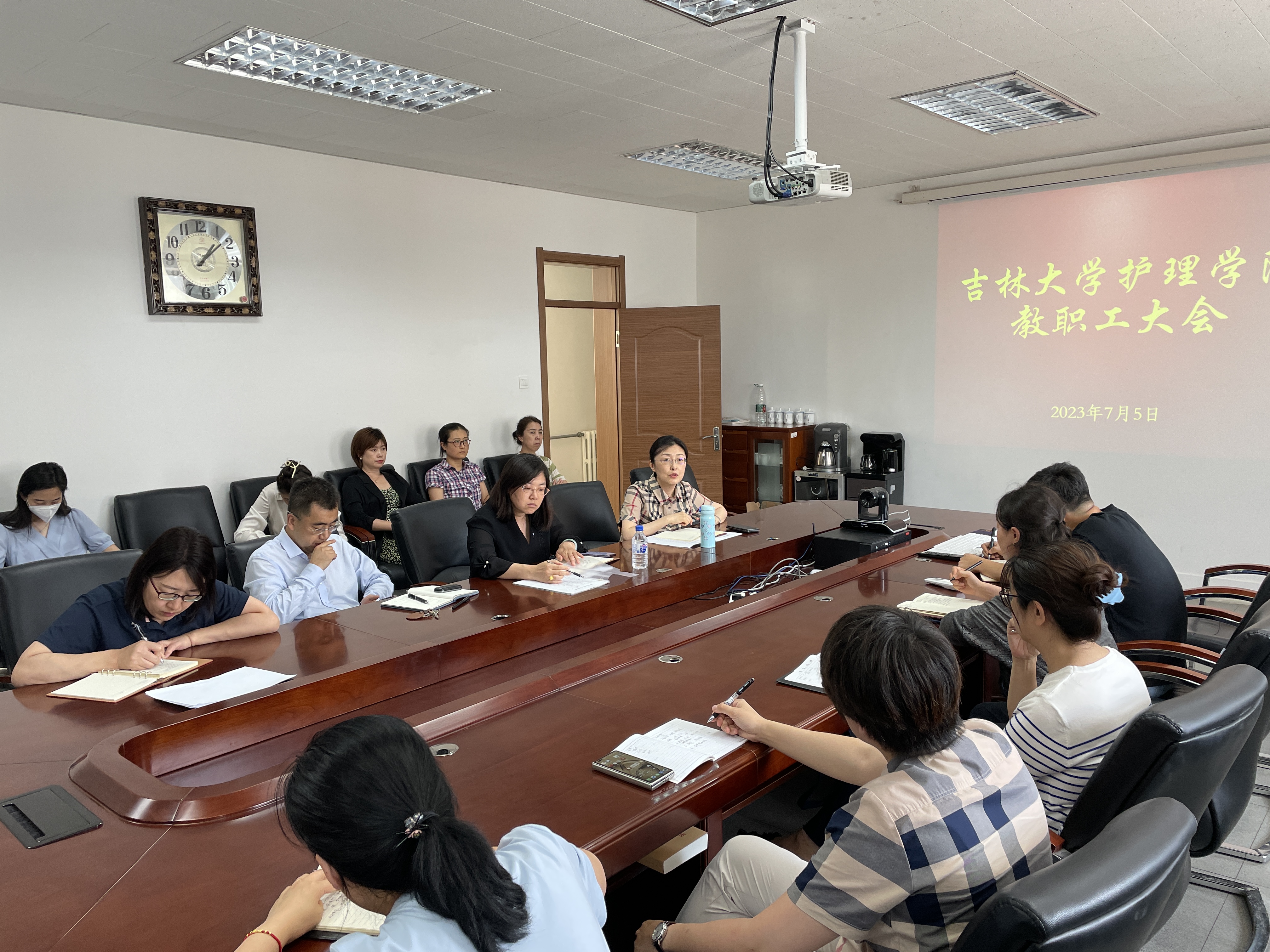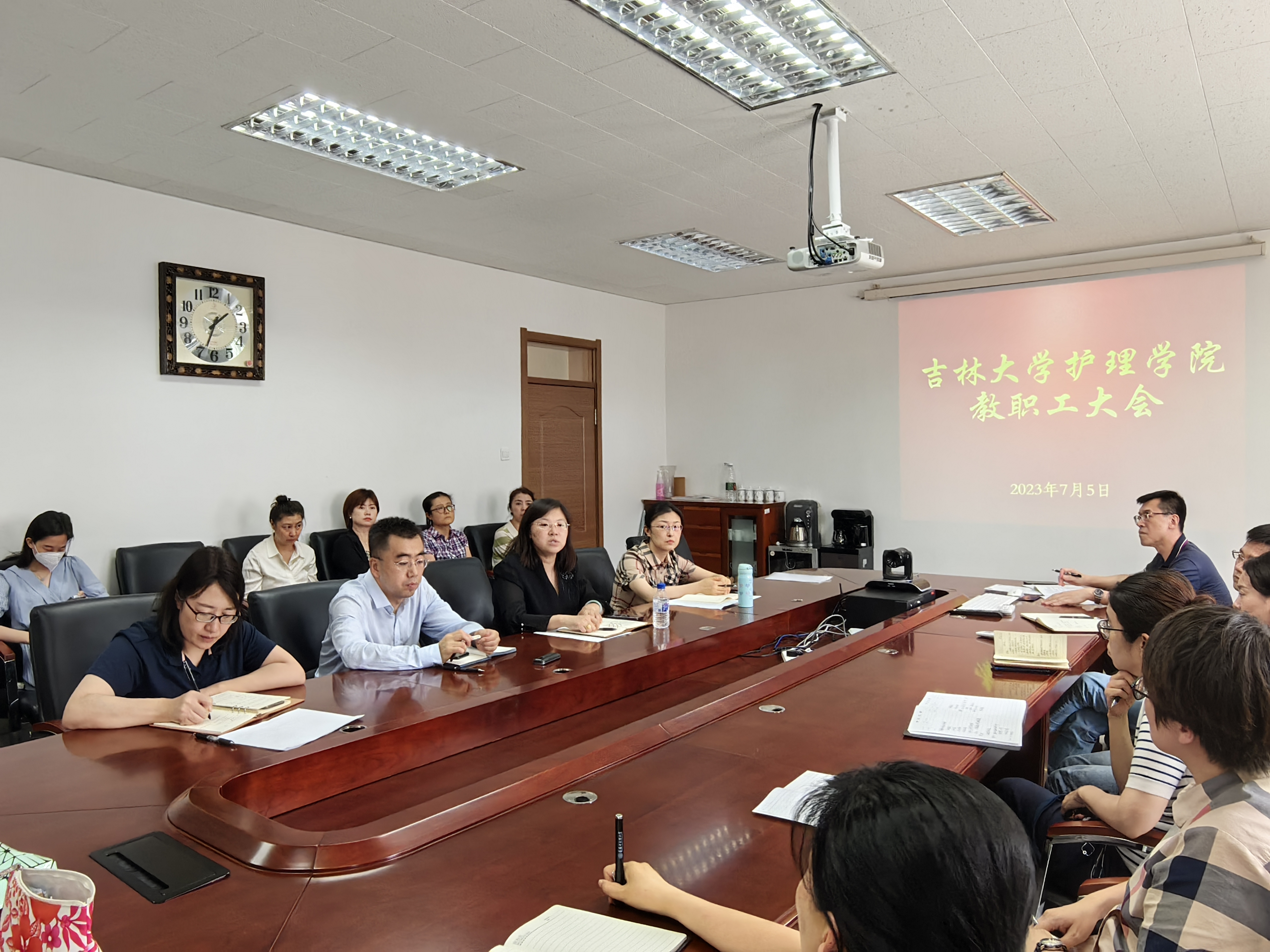 在三楼会议室召开2023年第六次全院教职工大会,全体教职工参加会议。会议由副院长李峰主持。