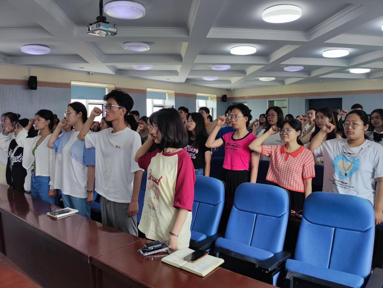 最后,全体党员重温入党誓词,在支部书记刘宇飞的带领下,面向党旗庄严宣誓。