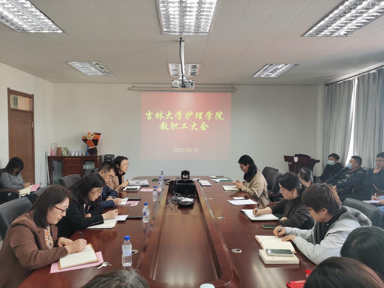 在三楼会议室召开2023年第四次全院教职工大会,全体教职工参加会议。会议由院党委书记韩月波主持。