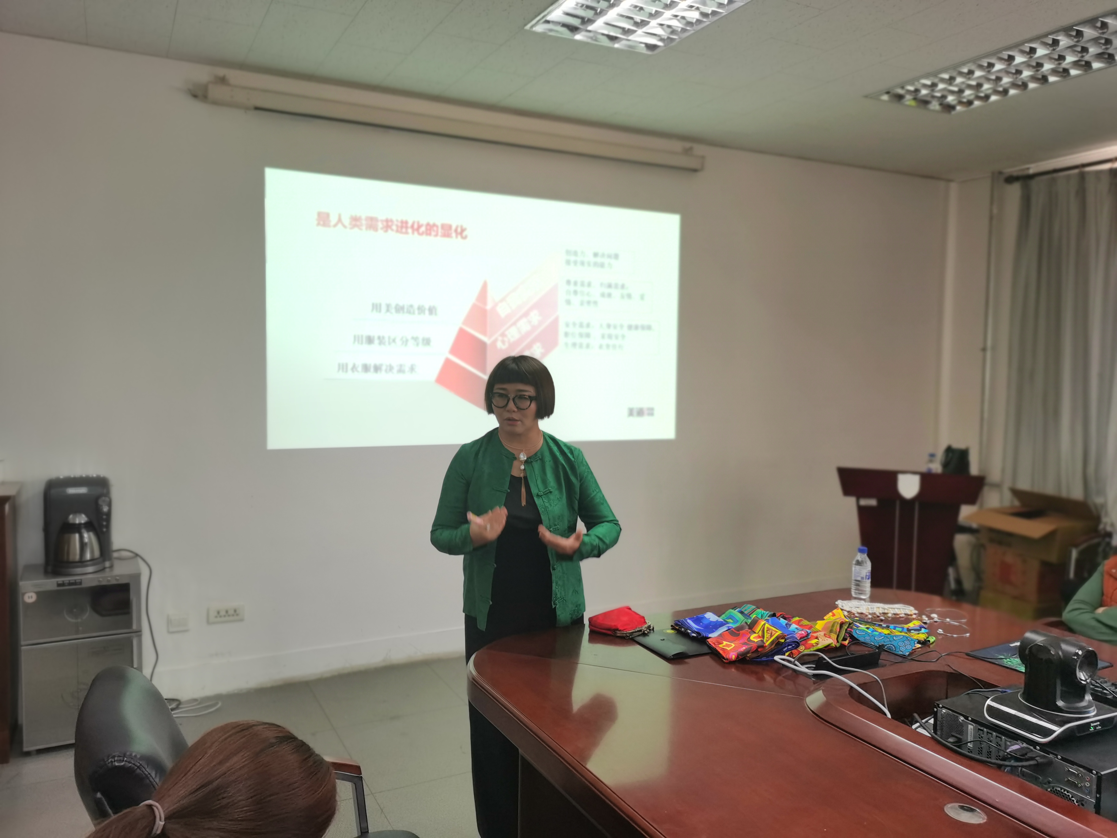 讲座中,聂老师从穿衣之道的五重境界展开讲述,向参加讲座的老师们分享了色彩搭配、款式搭配以及根据身材、脸型等特点选择合适的衣物等技巧和理论知识,并提出了提升魅力的四个维度:形象力、幸福力、创造力、财富力,鼓励参会老师们勇于打破内心束缚,尝试多样风格,让着装成为实现蔽体和保暖功能外既能愉人又能愉己的美学享受。聂老师还现场邀请了参会老师作为模特,从她们的肤色、气质等方面为老师们进行了色彩和服饰的搭配,令大家受益匪浅。