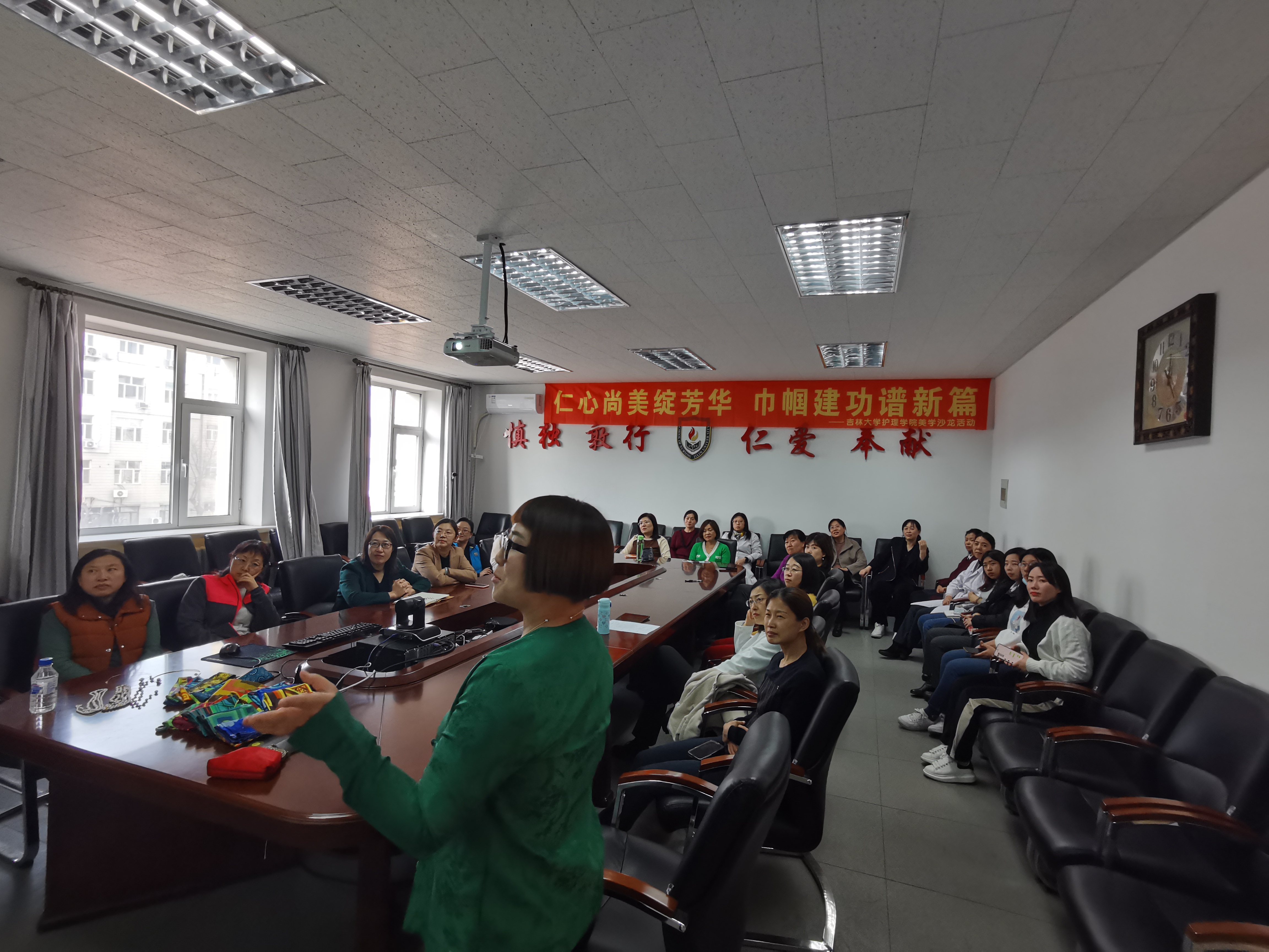 积极响应学校妇委会组织开展2022年度“巾帼心向党 喜迎二十大——‘妇女小家一家一品’创新项目”立项工作号召,于11月10日邀请美道学苑创始人聂新林老师做主题为“仁心尚美绽芳华 巾帼建功谱新篇”的美学讲座。学院党委书记韩月波,党委副书记兼副院长、妇委会主任葛宗梅,副院长李昆以及全院女教职工积极参加活动。