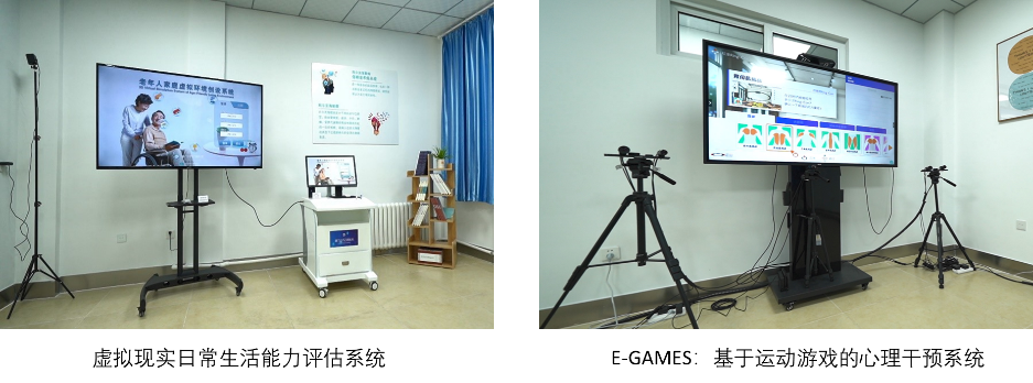 本次活动分别对基地自主研发的“虚拟现实日常生活能力评估系统”和“E-GAMES:基于运动游戏的心理干预系统”2款多学科交叉创新智能产品进行展示和深度体验。其功能涵盖了针对老年人日常生活能力评估和干预、促进和维护大学生群体心理健康的运动游戏干预等方面。