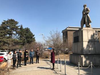 机关党支部全体党员及积极分子来到白求恩像前,开展“缅怀先烈事迹,传承白求恩精神”为主题的主题党日活动。
