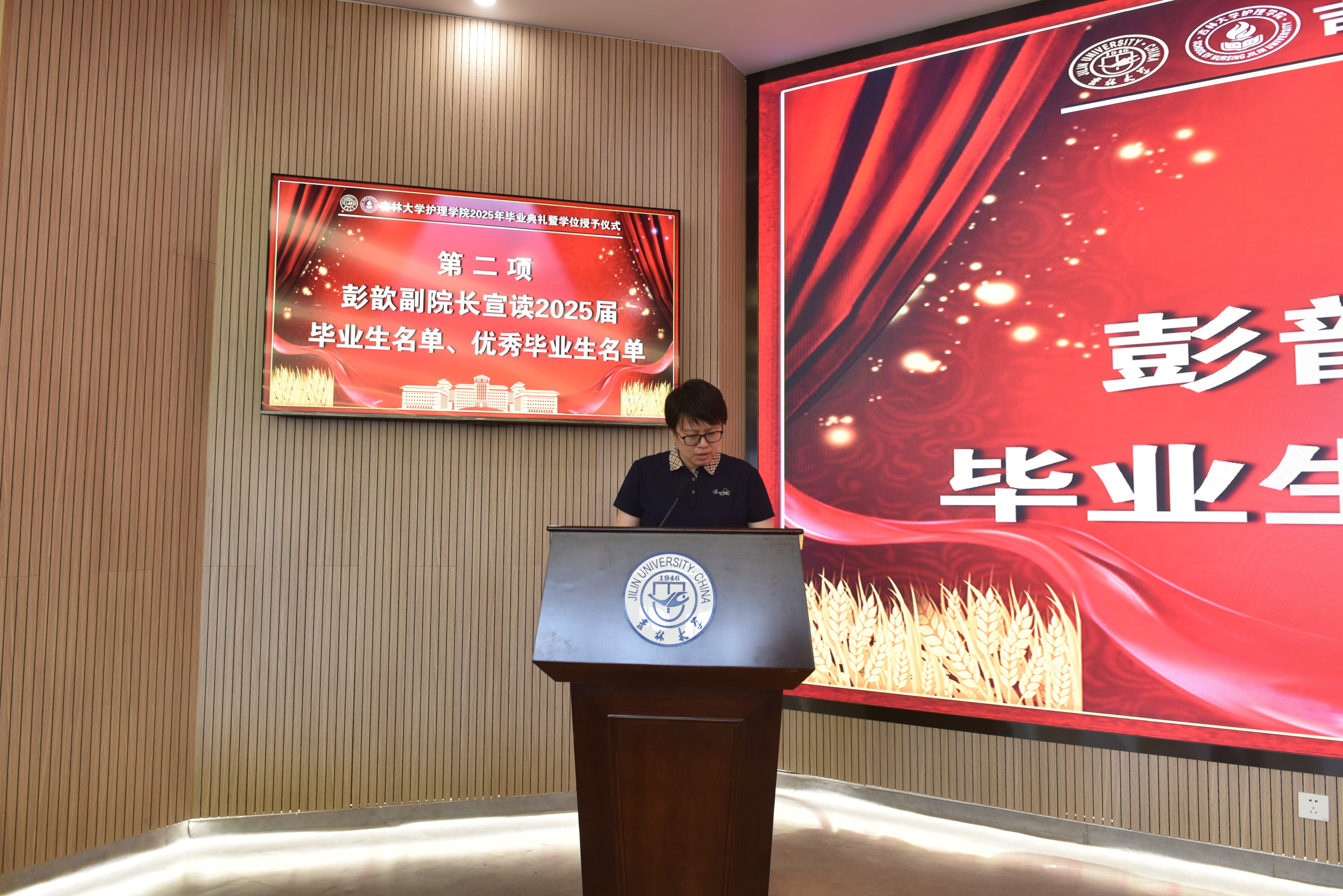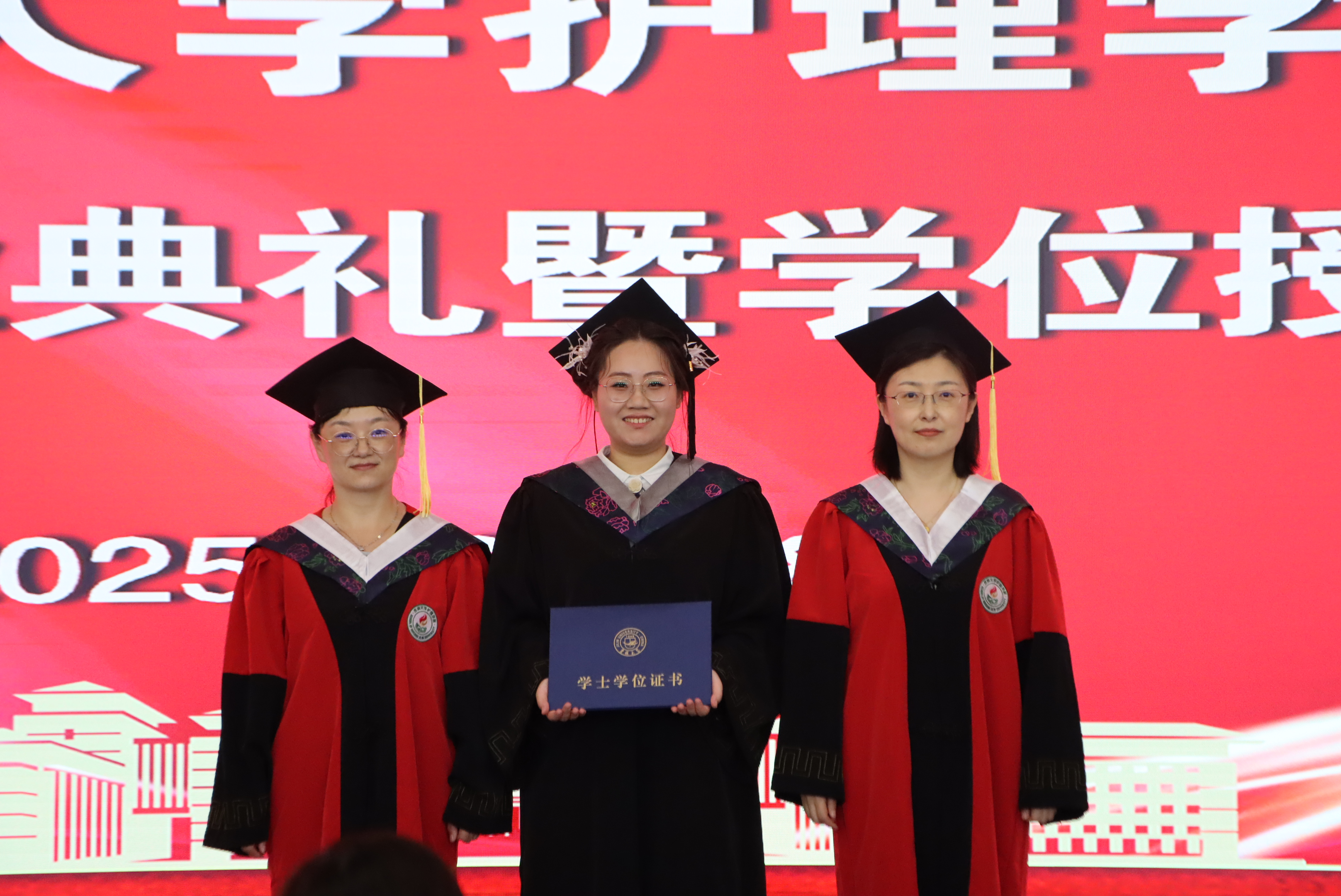 的成长历程,并表达了对全体毕业生的殷切希望和真挚祝福:一是希望同学们坚定理想信念,坚守使命初心,以奋斗之我、青春之我,担起历史赋予青年一代的使命;二是希望同学们秉承白医精神,践行医者仁心,不断用实际行动擦亮吉大护理的金字招牌;三是希望同学们矢志不渝奋斗,永葆干事恒心,以守正创新、服务大局的自觉意识实心干事,用行动诠释护理人和康复人的责任与担当。