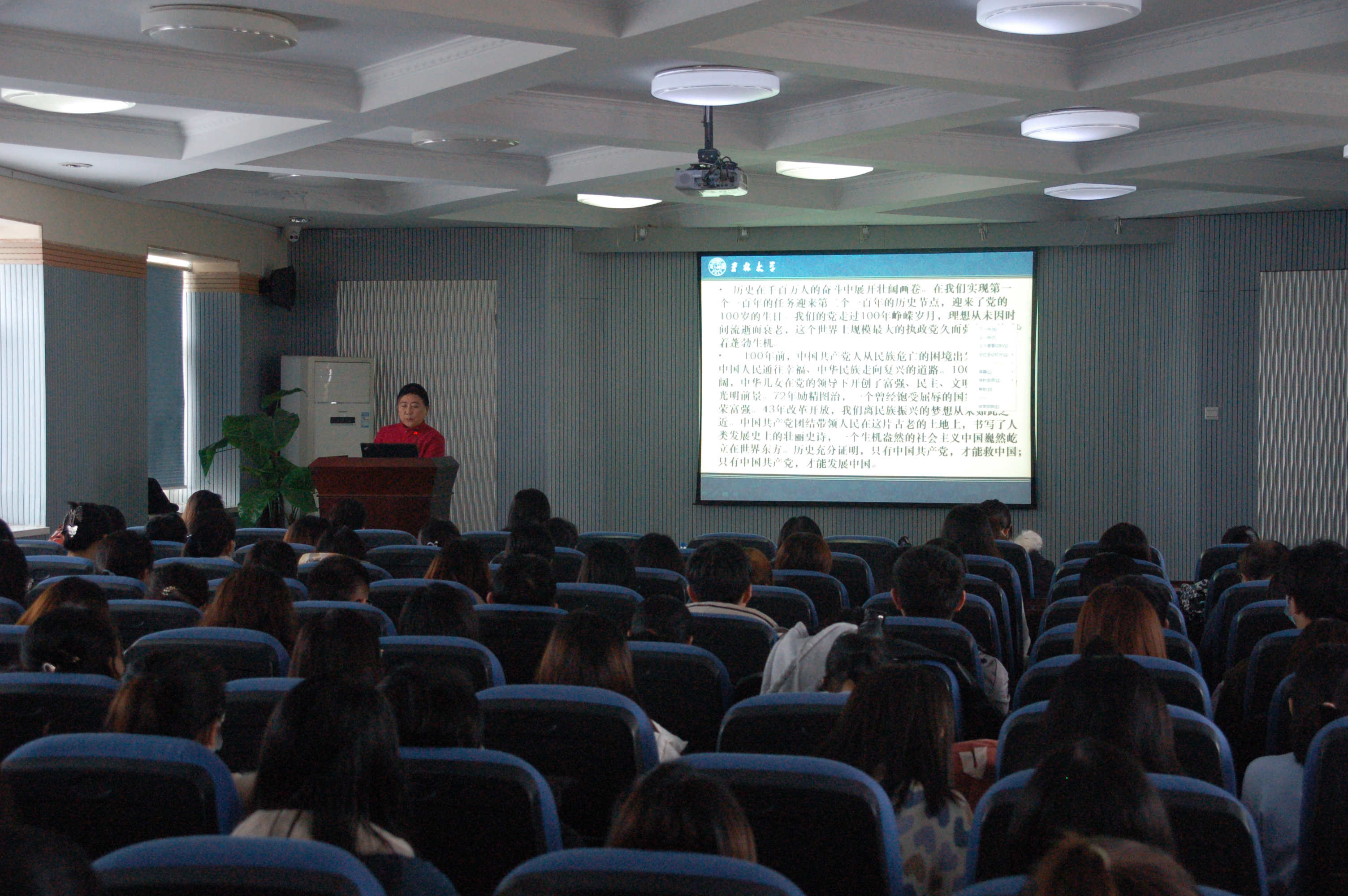 讲座之后,韩月波书记总结讲话。首先,她感谢傅菁林教授激情澎湃的演讲给师生带来一次难得的学习机会,通过学习回顾中国共产党百年光辉历程,我们深感自豪,备受鼓舞;展望新的历史使命,我们信心百倍,斗志昂扬。学院全体师生将以建党百年为新起点,不忘初心,接续奋斗,在奋斗中把党的成功经验传承好、发扬好。