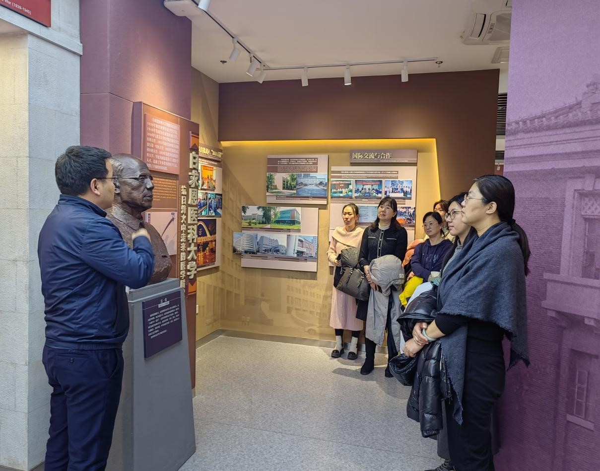 穿越“时空隧道”,教职工们逐一走过合校前六所高等学校的“校门”,在六位老校长的铜像前驻足,教职工们对每所学校的光荣传统、办学特色等内容有了更为清晰的认知。在“继往开来”展区,大家见证了新九游娱乐