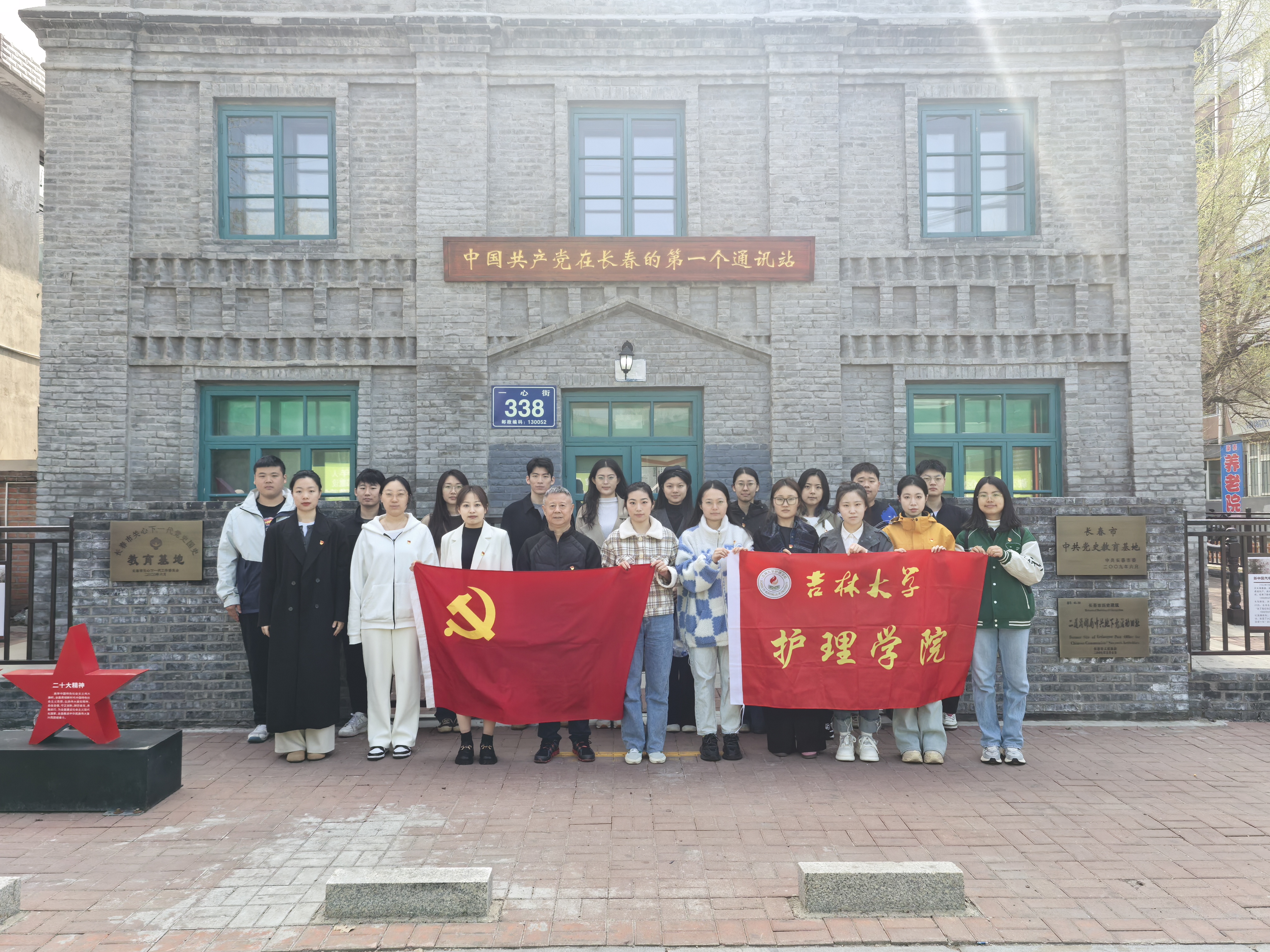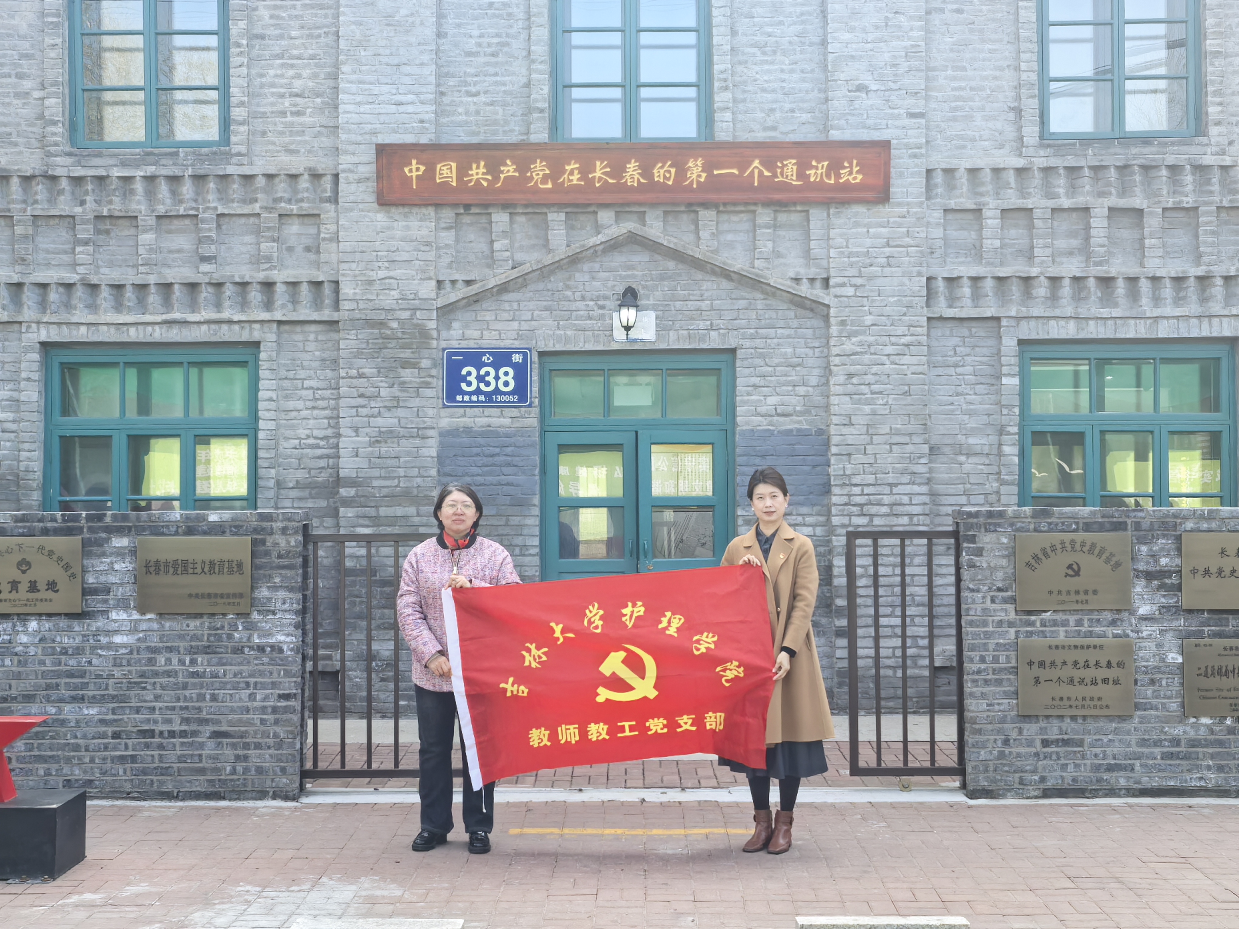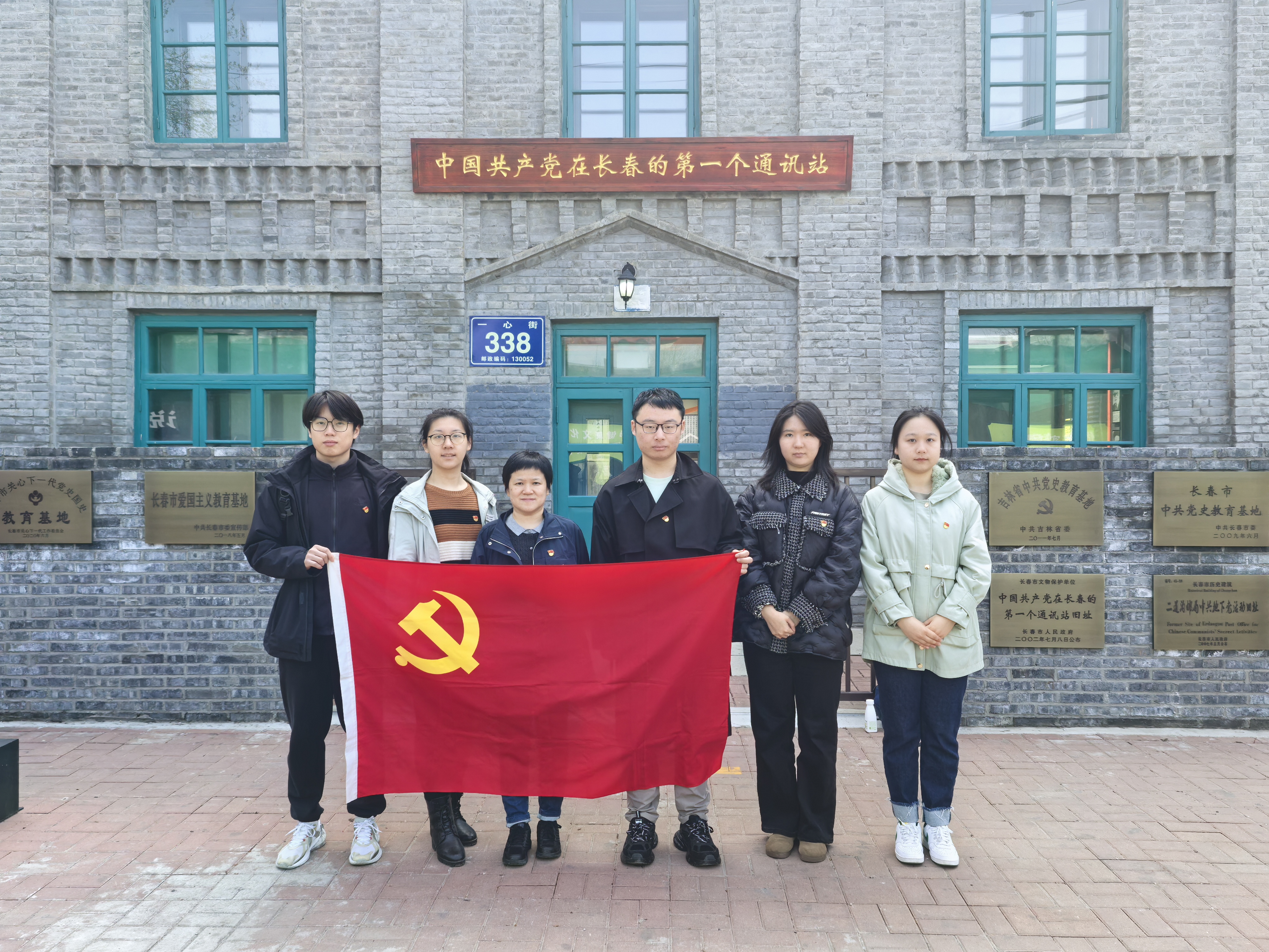 部分师生党员在学院党委书记韩月波、学院副书记兼副院长密佳音的带领下,前往中国共产党在长春的第一个通讯站开展参观研学活动。