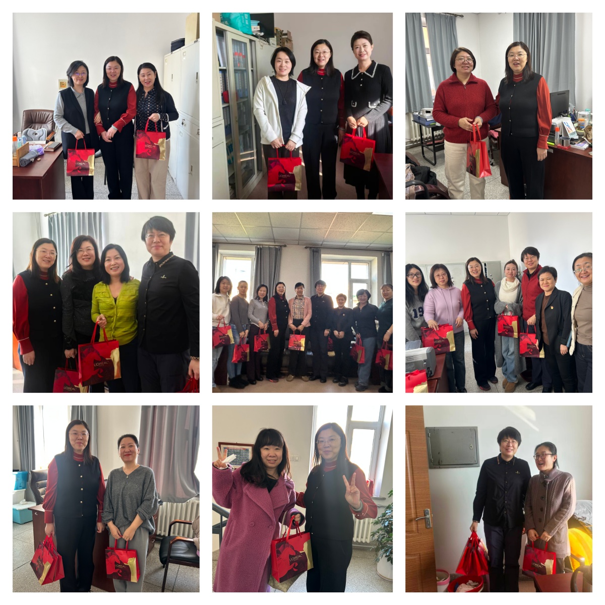 暖心慰问传温情,巾帼同心共奋进。3月6日,学院党委书记带领学院领导班子,深入各教研(科)室,开展节日走访慰问活动。每到一处,领导班子都与女教职工们亲切交谈,详细询问大家的工作近况与生活需求,对她们长期以来立足岗位、默默奉献,为学院护理教育事业发展付出的辛勤努力给予高度肯定和衷心感谢。随后,领导班子为每一位女教职工送上精心准备的化妆品套盒,把学院的温暖与关怀送到“女神”们的心坎上。一句句暖心的问候,一份份贴心的礼物,让女教职工们深切感受到学院大家庭的温暖,大家纷纷表示,将把这份关怀转化为工作的动力,继续以饱满的热情投身护理教育事业,绽放巾帼风采。