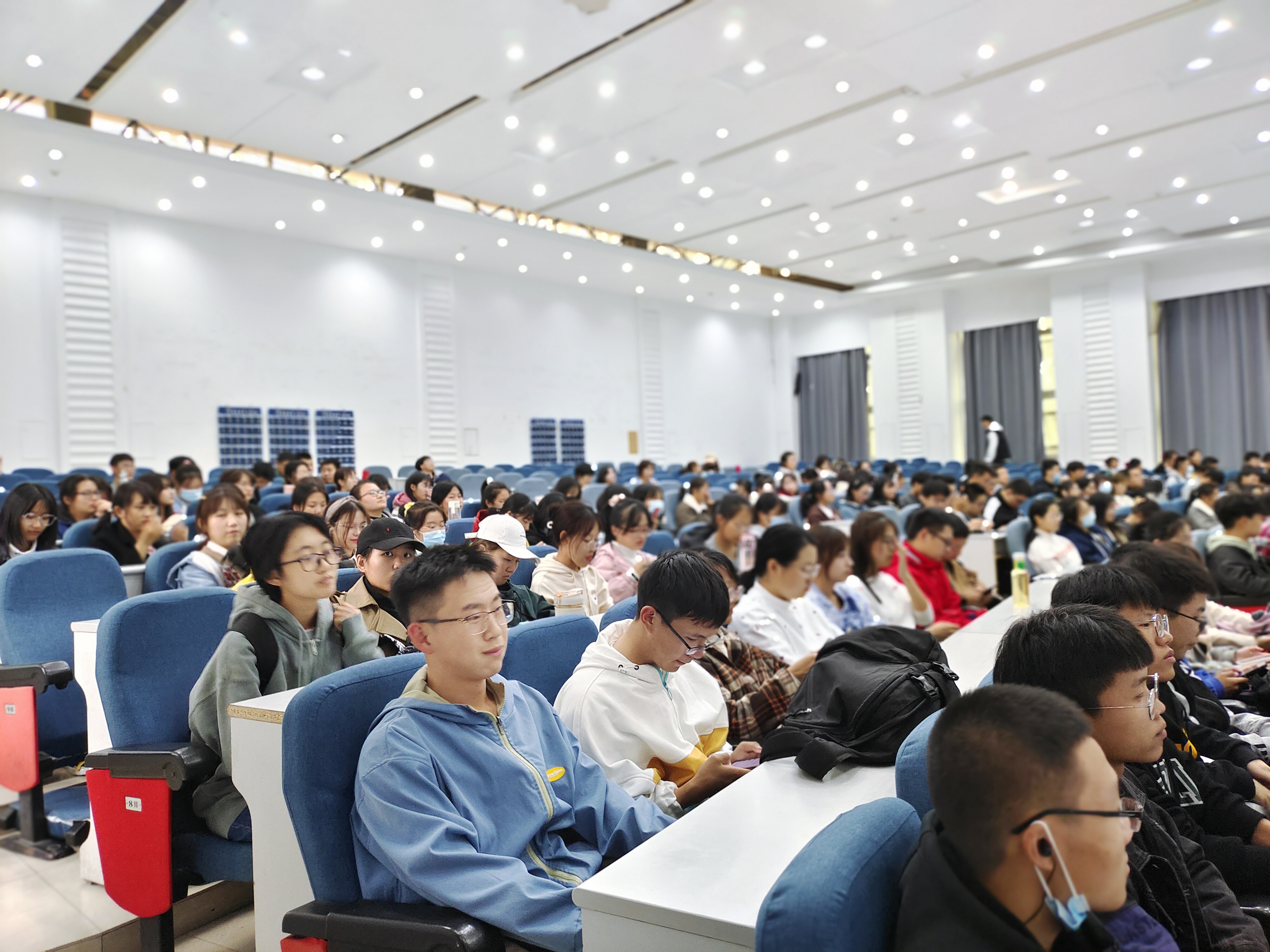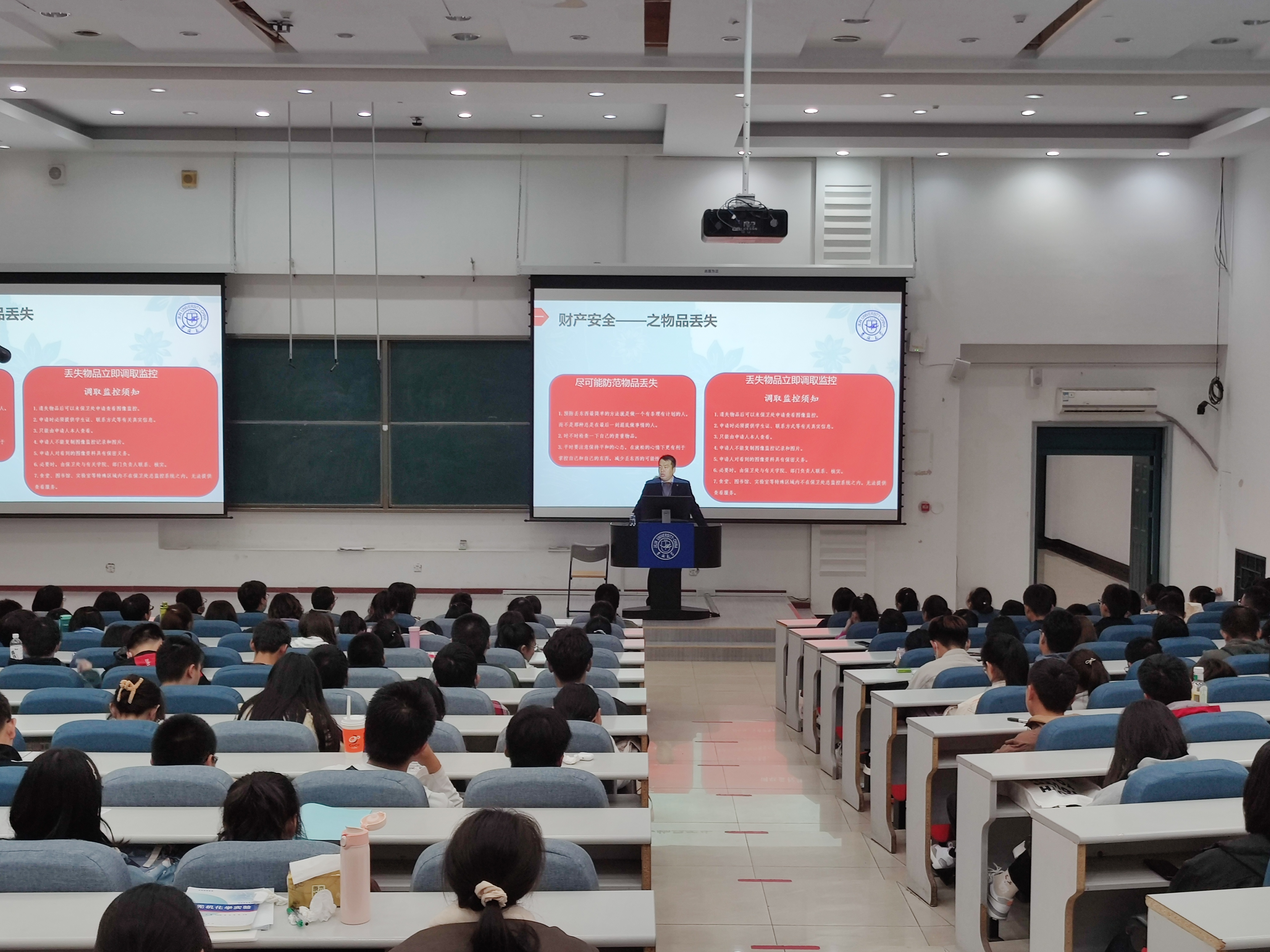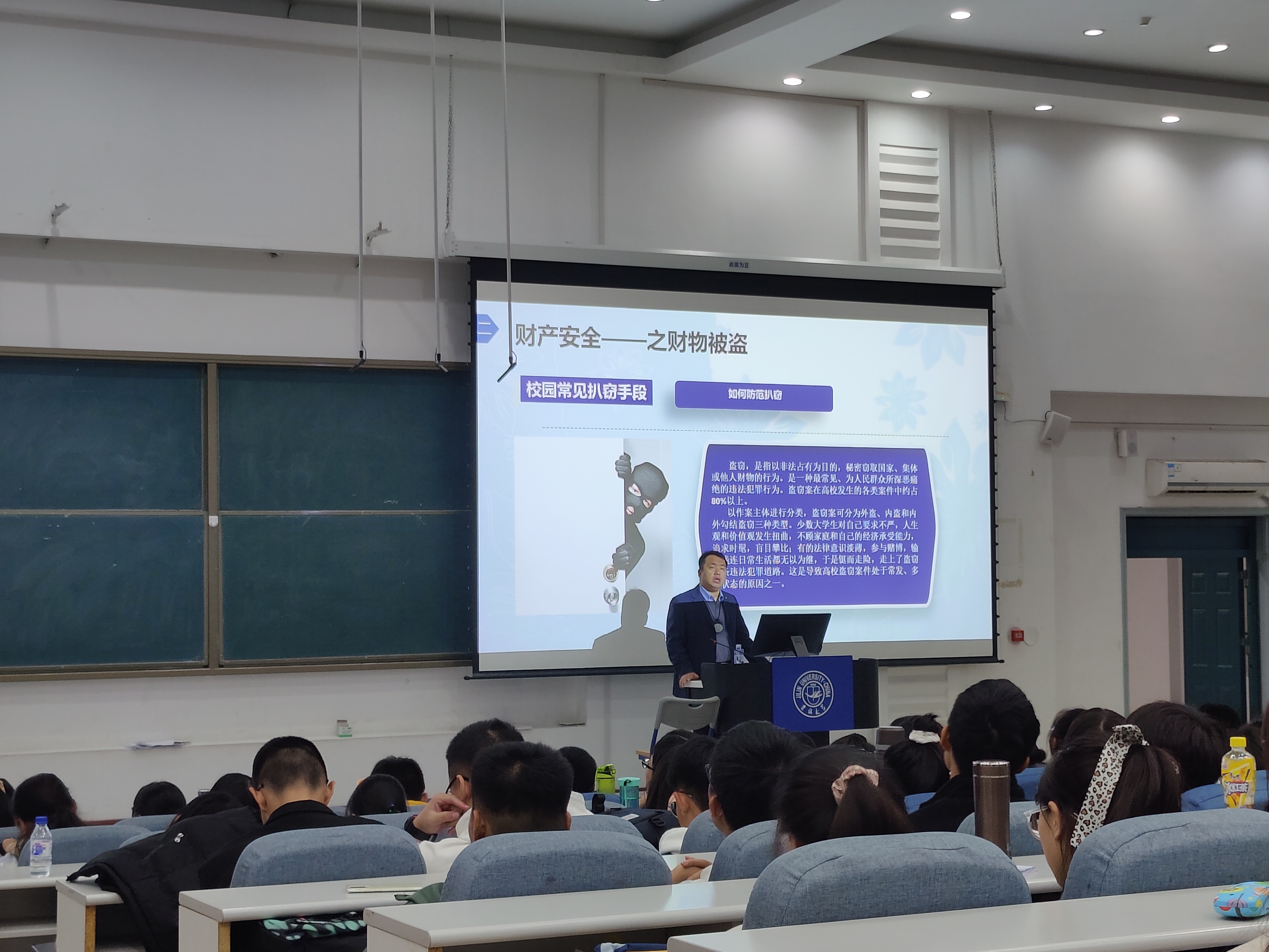 全体2021级本科生于经信教学楼F区5阶教室参加我校保卫处左学成老师的安全教育讲座。